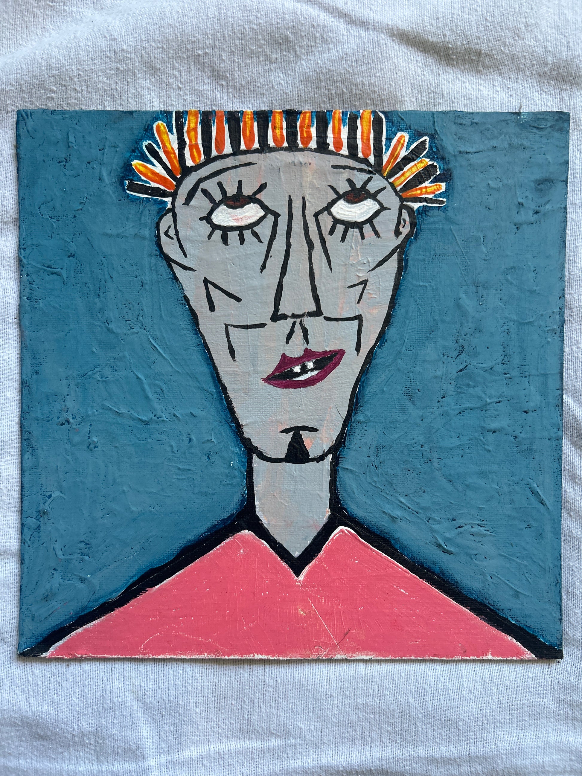 Acrylic and oil pastel on canvas board. 25 x 25 cm.